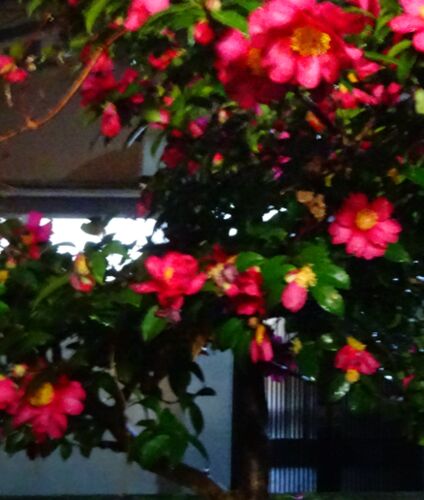 私の玄関の正面には、山茶花が 咲いています。今の季節には、季節を感ずる花として、 育ててきました。玄関を開ける度に、目についている はずなのに、今日に限って ちがっていた。夜も更けて、ふと気が付けば、 この花は、大方が散り始めて土に 帰ろうとし…