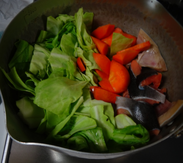 ② 鮭を入れて、しばらくして